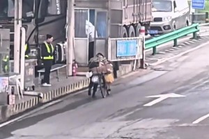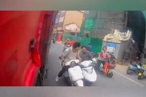 骑车撞上大货车,司机被吓了一跳
