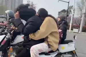 爸爸偶遇儿子载女生,孩子害羞捂脸
